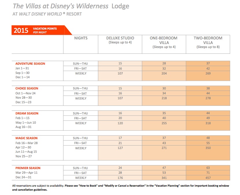 Disney Vacation Club point charts are available for all DVC Resorts and the Disney Cruise Line at DVCMember.com.